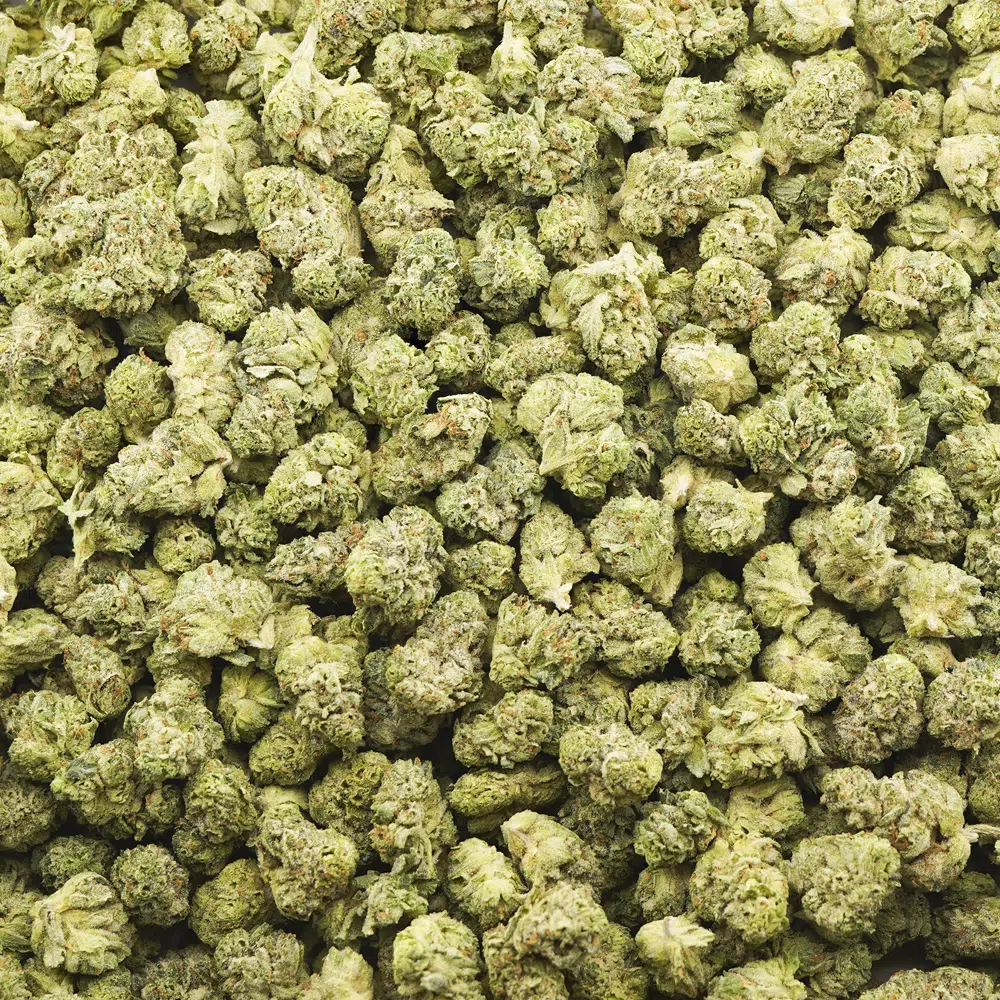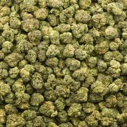 Funky Charms Craft Popcorn – Hybrid is an evenly balanced hybrid strain (50% indica/50% sativa) created through crossing the iconic Grease Monkey X Rainbow Chip strains.