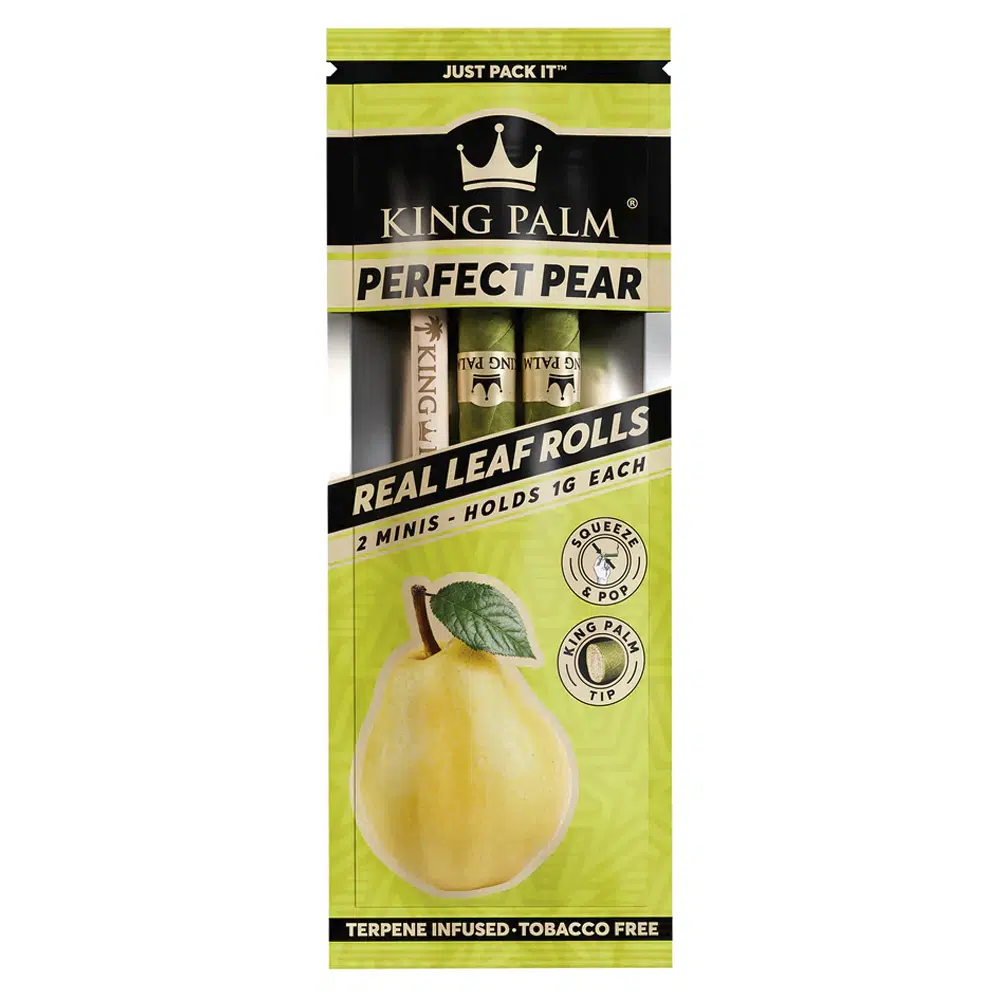 Experience a distinctive smoking journey with King Palm’s Mini Perfect Pear Terps. Crafted to enhance your smoking session, these all-natural leaf wraps are infused with an enticing pear flavor, adding a delightful essence to your herbs.