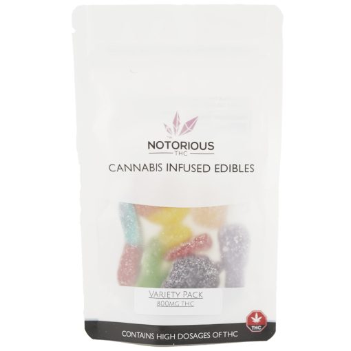 Notorious – THC Variety Pack – 100MG (800MG) is recommend for THC users looking to get the benefits of THC and prefer using an ingestible for an accurate THC dosage.